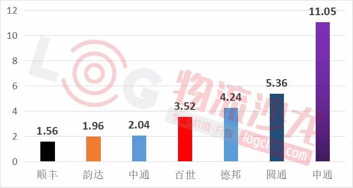 根據國家郵政局《關于郵政業消費者申訴情況的通告》數據統計,2017年全年,順豐依舊是2017年總體申訴率最低的企業,月平均申訴率為 1.56件(每百萬件快遞有效申訴數量),遠低于全國平均的 5.79件。而申通的月平均申訴率為11.05件,表現一般。總體排名為順豐、韻達、中通、百世、德邦、圓通、申通。