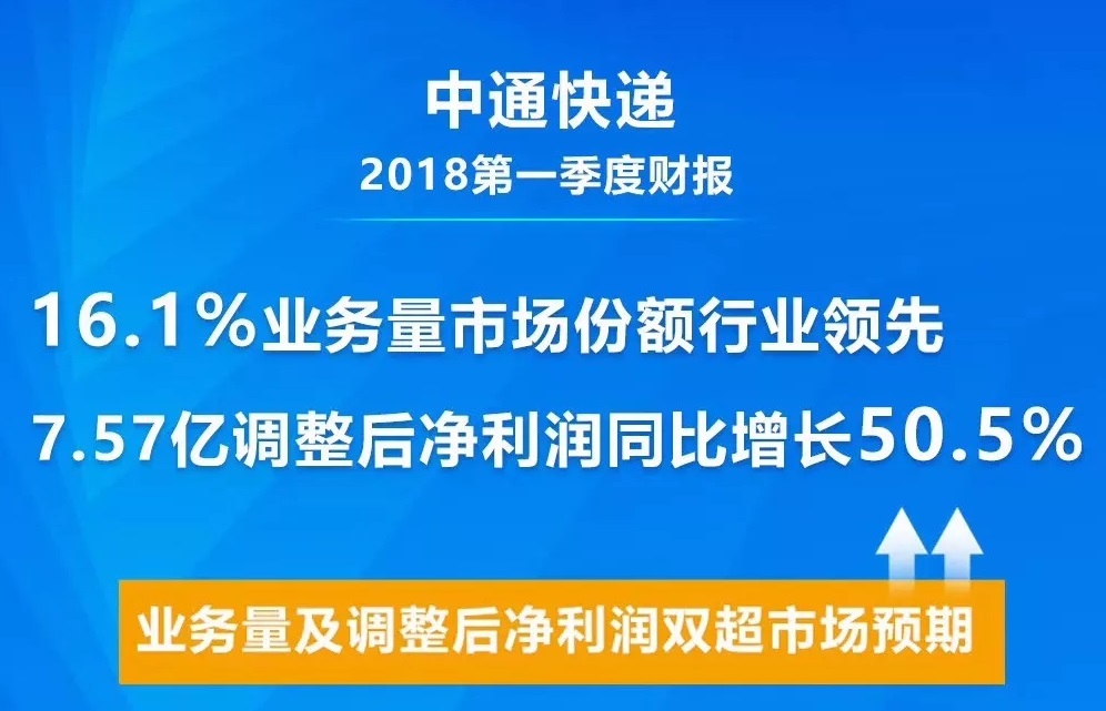 5月10日,中通快遞發布了截止到2018年3月31日的第一季度未經審計財報。財報顯示,中通快遞第一季度營收為35.444億元人民幣(約合5.651億美元),同比增長35.6%;一季度凈利潤為5.575億元人民幣(約合8890萬美元),同比增長10.9%。